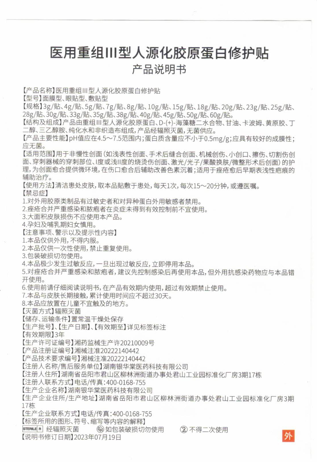 医用重组Ⅲ型人源化胶原蛋白修复贴
